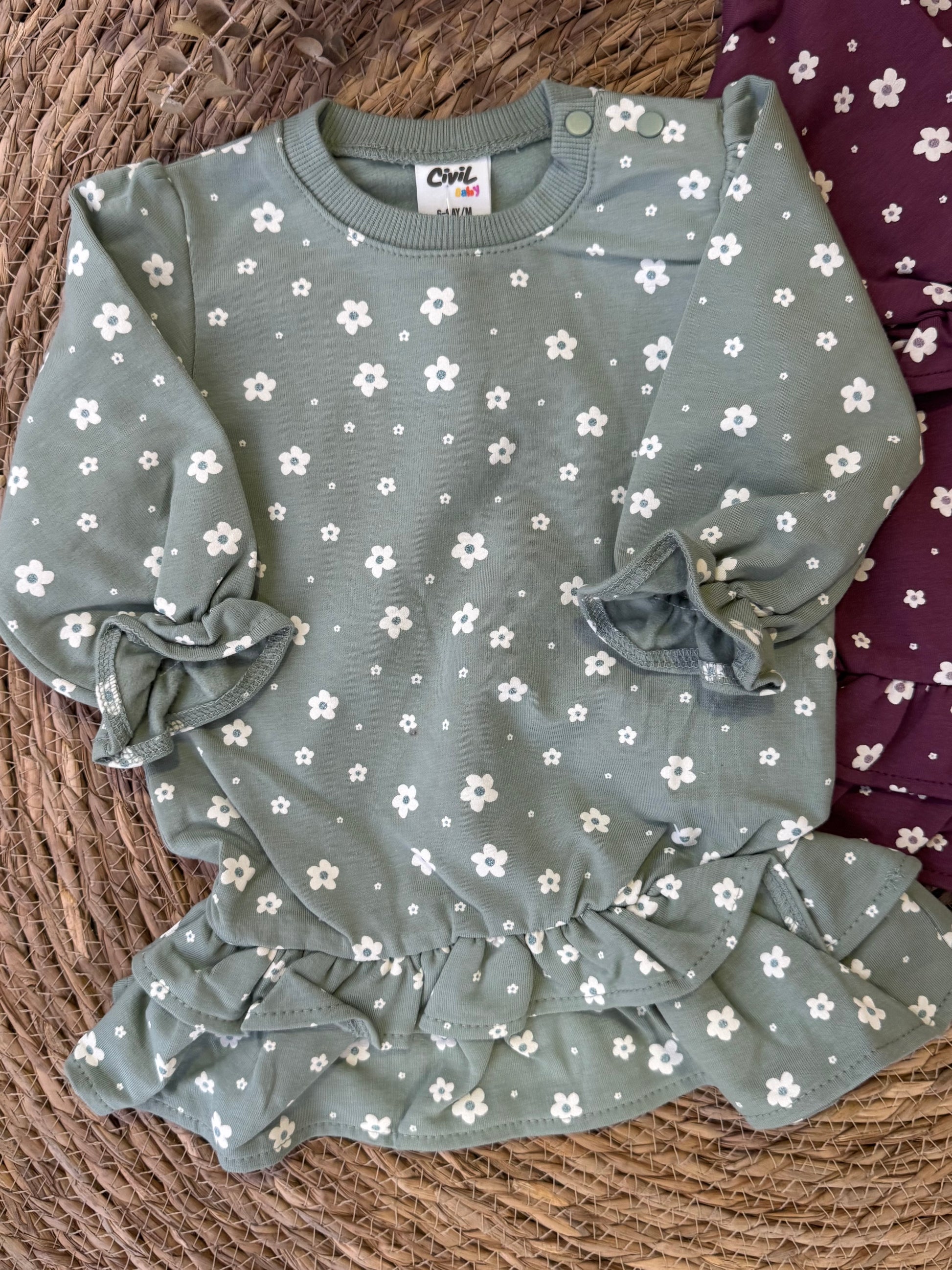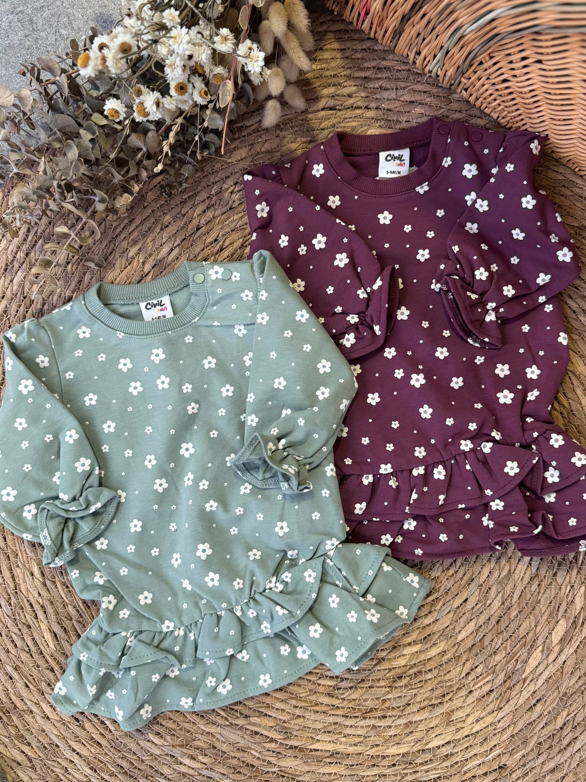 Available in two dreamy shades โ sage green and plum purple โ itโs perfect for birthdays, playdates, or everyday wear with a touch of elegance.