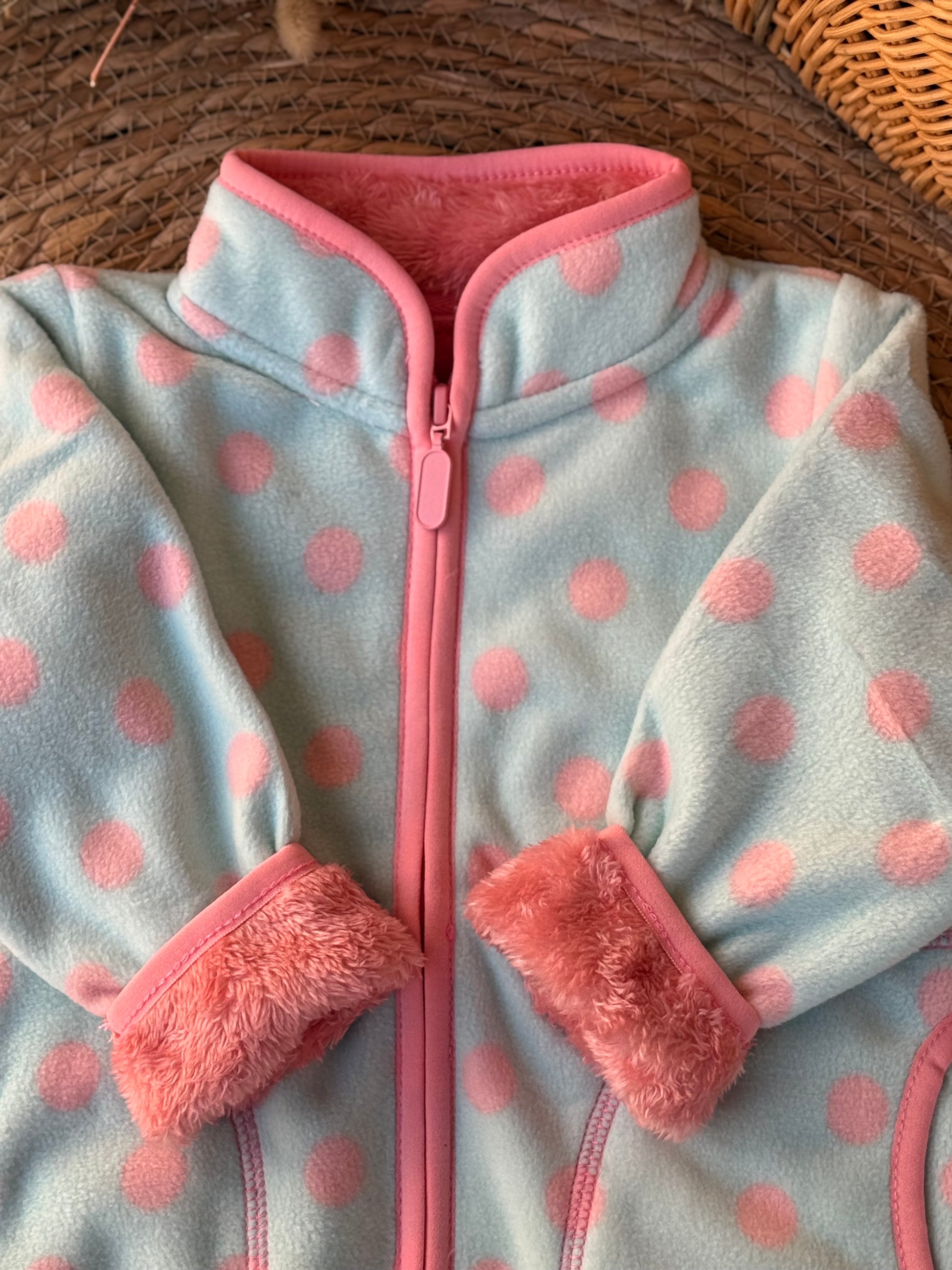 Girls’ Polka Dot Fleece Jacket – Mint & Pink