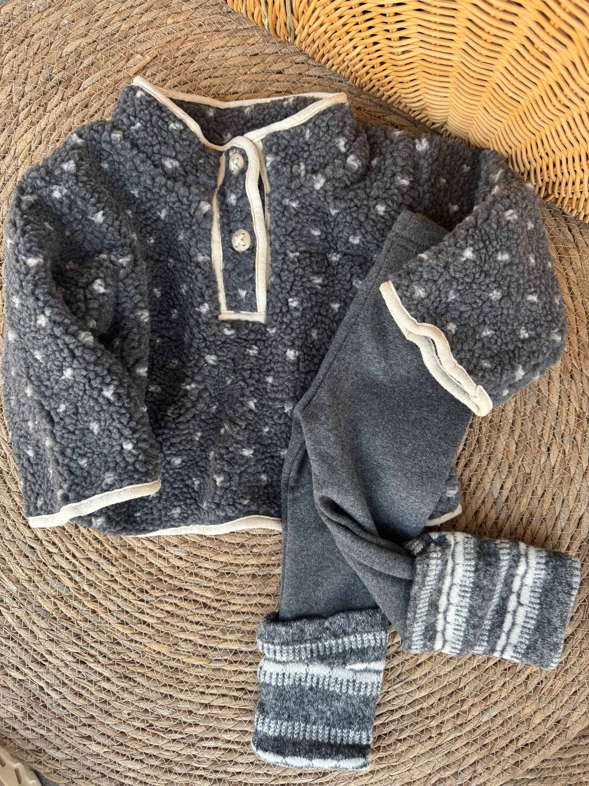 Winter Cozy Fleece Set – Charcoal Snow